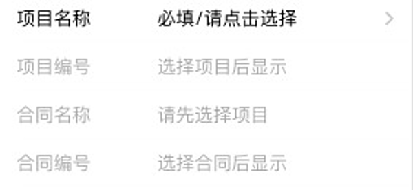 2)选择项目后方可选择对应合同。